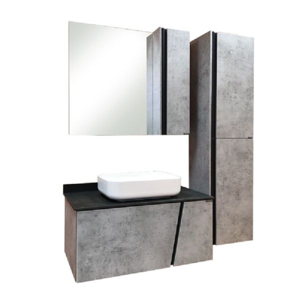 COMFORTY Тумба-умывальник Эдинбург-90 бетон светлый с черной столешницей купить