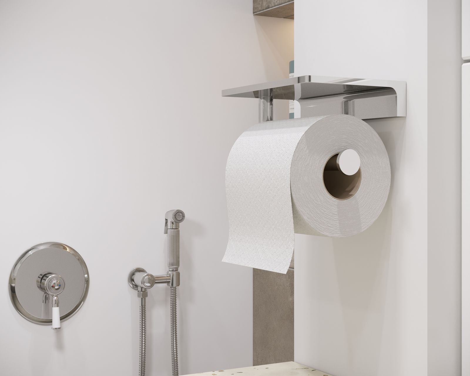 Красивая геометрия, виртуозность исполнения, хромированное покрытие будет отлично смотреться в интерьере хай-тек, loft или минимализм. Размещение сразу двух необходимых предметов на одном девайсе выглядит удобно и очень логично.Держатель туалетной бумаги с полочкой представляет собой прочную настенную конструкцию. Модель эргономична – продумана каждая деталь. Например, рулон туалетной бумаги не срывается с держателя, если вы случайно приложили большее усилие и чуть сильнее потянули за край.