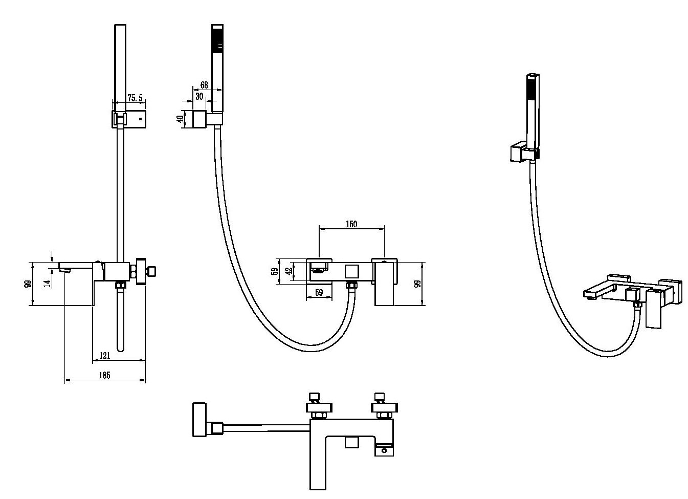 - Длина душевого шланга: 150 см.