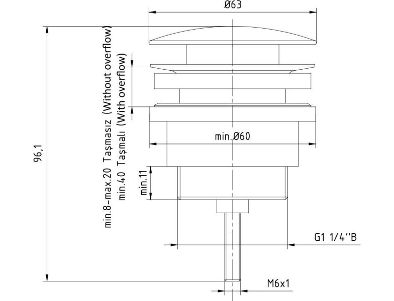 - Диаметр слива: G 1 1/4"
