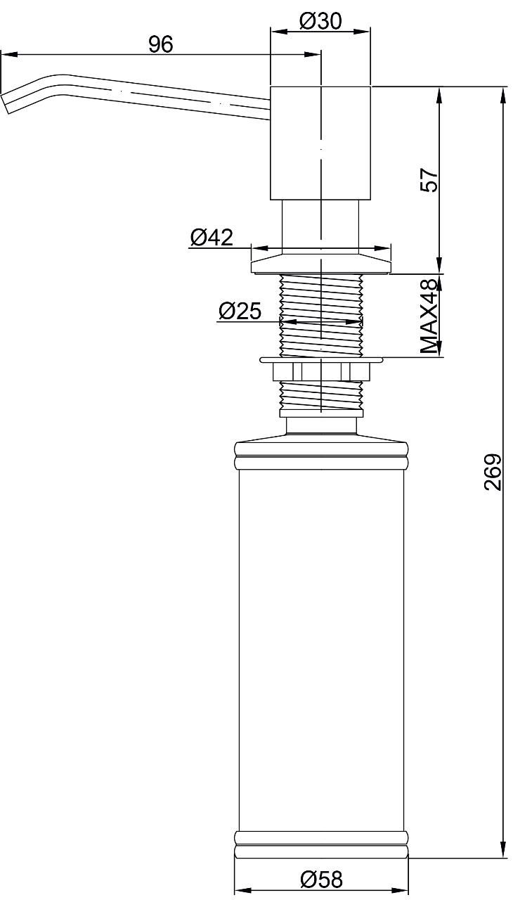 Дозатор для кухни и ванной, артикул D002-328Дозатор для кухни или ванной серии Rein, встраиваемый, объемом 350 мл, матовая поверхность, изготовлен из латуни и пластика.