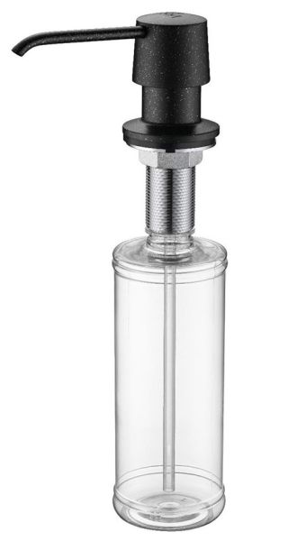 Дозатор для кухни и ванной, артикул D001-308Дозатор для кухни или ванной, встраиваемый, объемом 350 мл, матовая поверхность, изготовлен из латуни и пластика.