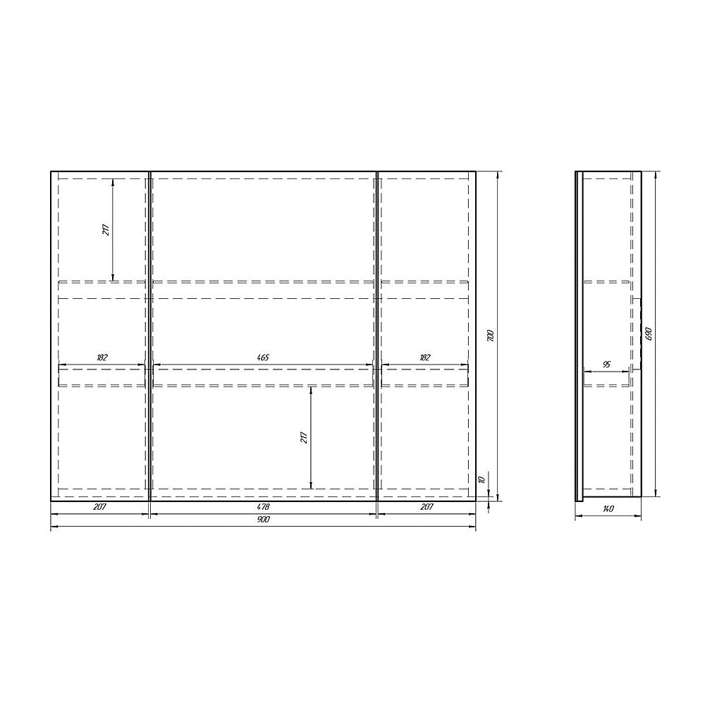 Французское зеркальное полотно. Универсальный зеркальный шкаф. Боковины - глянцевое МДФ. Внутренние стеклянные полочки. Крепление к стене - гребенка. Подходит к любой коллекции Dreja.eco
