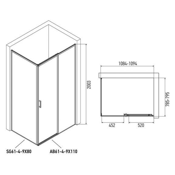 Душевая боковая стенка Alex Baitler SG61C80 80×200 смДополняет двери 6 серии, образуя уголок для душа. Подходит для дверей: AB61C110 / AB61C120