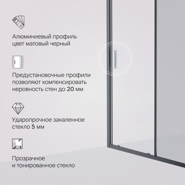 Душевая дверь Am.Pm Gem W90G-120-1-195BG 120 см цвет профиля чёрный матовый стекло тонированное купить
