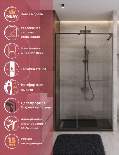 Душевая дверь CEZARES LUX-B-FS-11-130-C-GM оружейная сталь купить