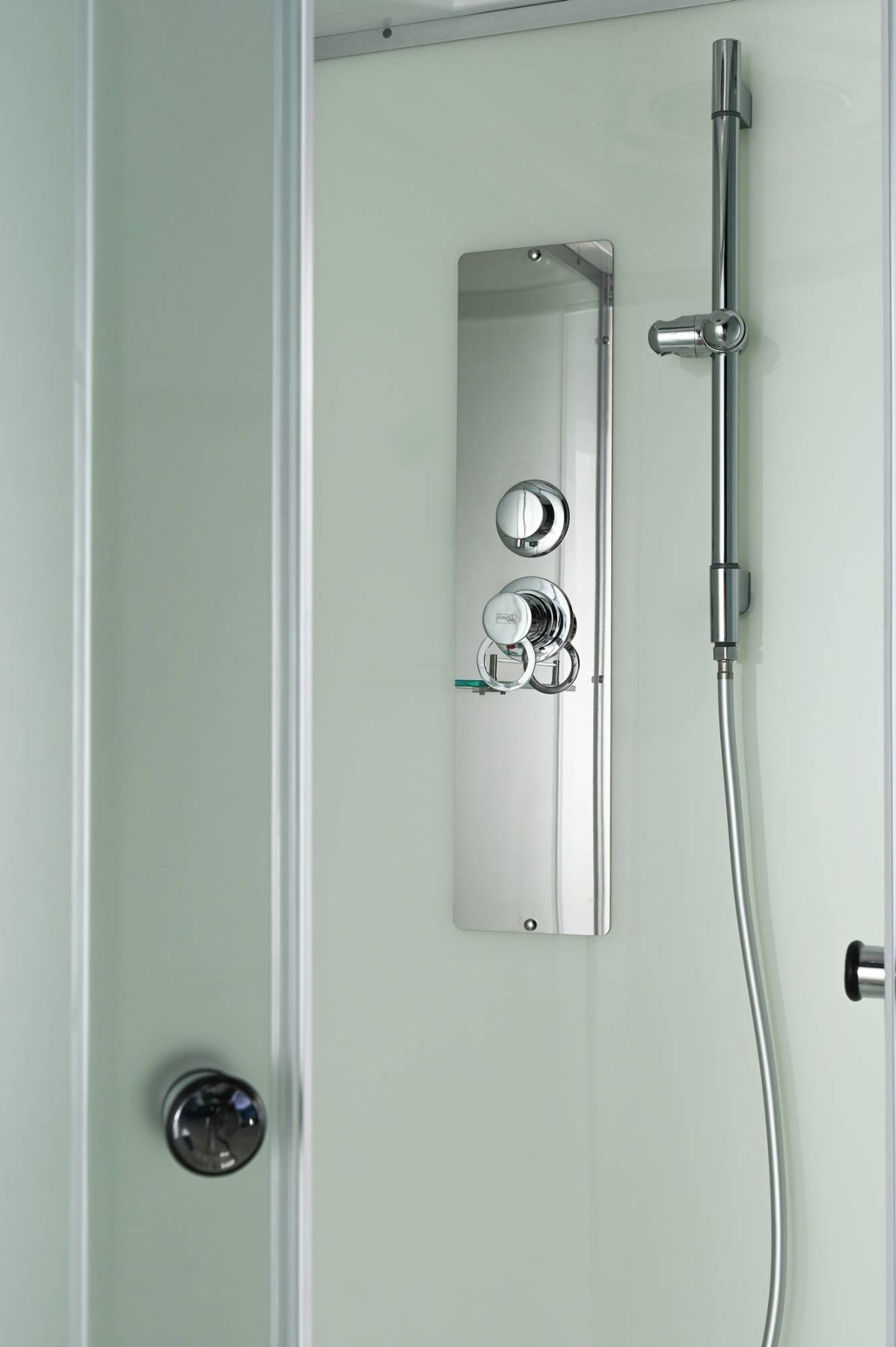 Стильная душевая кабина AvaCan D 3012L сочетает в себе высокую функциональность, практичность и надежность. При изготовлении применяется безопасное закаленное стекло толщиной 4 мм (матовое), надежно фиксируемое алюминиевым профилем. Сборка без силикона (увеличивает срок службы), внутренняя сборка (облегчает установку и ревизию, позволяет установить душевую кабину в ограниченном пространстве),смеситель резьбовой (без хомутов), съемный экран поддона (позволяет осуществлять ревизию сифона), цвет профиля матовый хром. Двойные металлические ролики дверей (увеличивают срок службы).В комплекте : душевая штанга, полочка, тропический (верхний) душ, арома-лейка с витамином С (картридж съемный).
