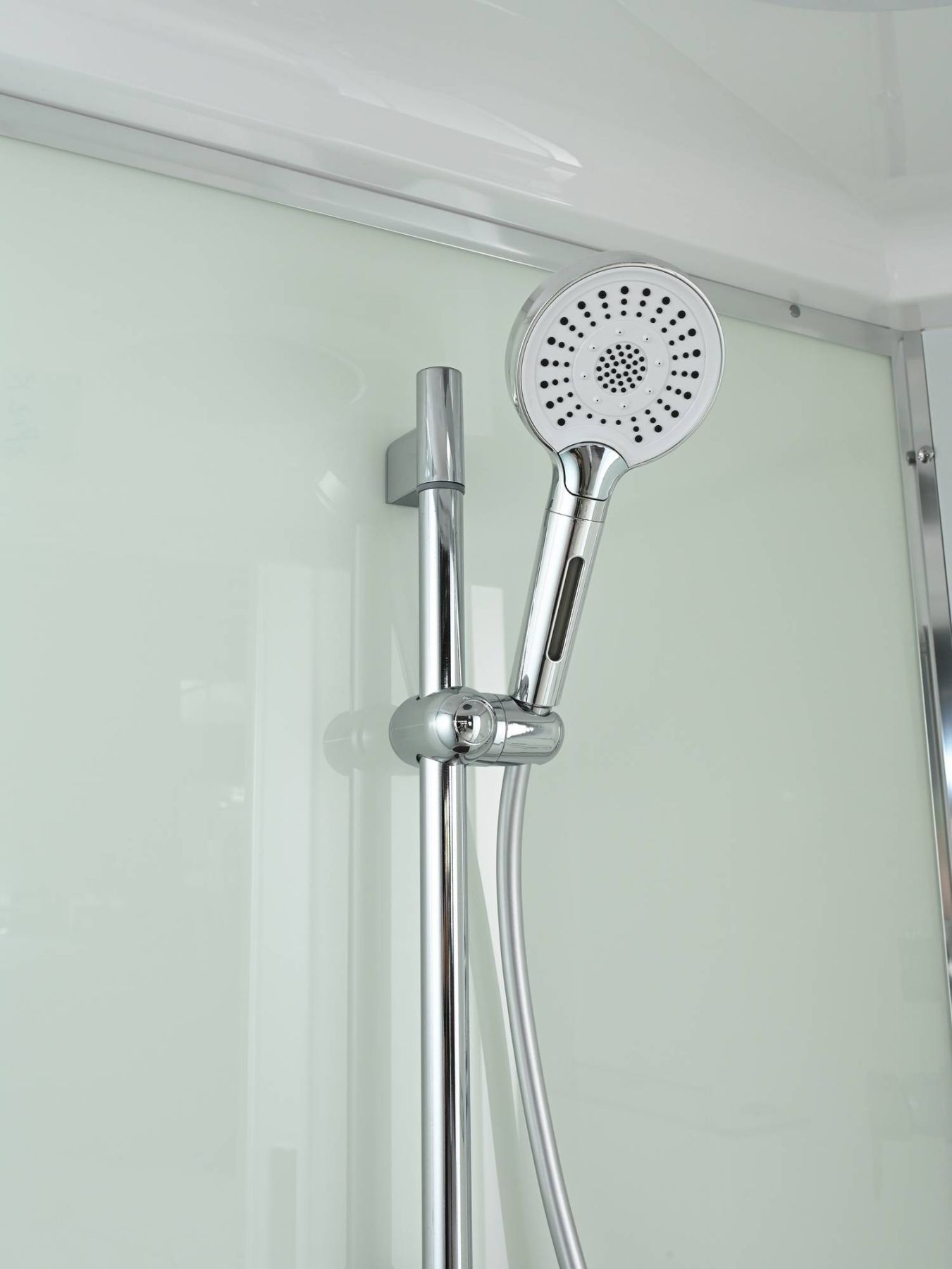 Стильная душевая кабина AvaCan EM2811L сочетает в себе высокую функциональность, практичность и надежность. При изготовлении применяется безопасное закаленное стекло толщиной 5 мм (матовое), надежно фиксируемое алюминиевым профилем. Сборка без силикона (увеличивает срок службы), внутренняя сборка(облегчает установку и ревизию; позволяет установить в ограниченном пространстве), смеситель резьбовой (без хомутов). Съемный экран поддона (позволяет осуществлять ревизию сифона). Цвет профиля хром. Двойные металлические ролики дверей (увеличивают срок службы).В комплекте : душевая штанга, две полочки , тропический (верхний) душ, арома-лейка с витамином С (картридж съемный),полимерная вставка в поддон(имитация дерева),сифон, ручки дверей из нержавейки , двойные ролики .
