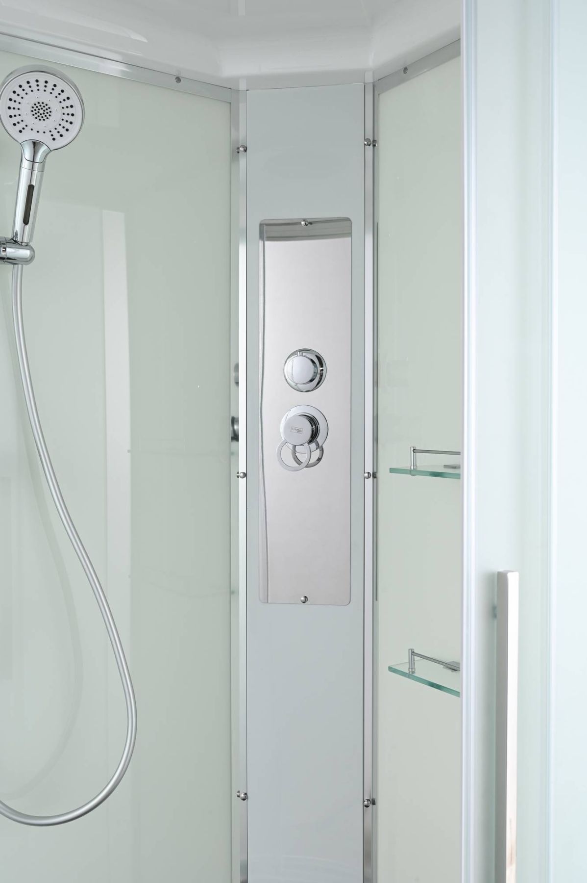 Стильная душевая кабина AvaCan EM2811R сочетает в себе высокую функциональность, практичность и надежность. При изготовлении применяется безопасное закаленное стекло толщиной 5 мм (матовое), надежно фиксируемое алюминиевым профилем. Сборка без силикона (увеличивает срок службы), внутренняя сборка(облегчает установку и ревизию; позволяет установить в ограниченном пространстве), смеситель резьбовой (без хомутов). Съемный экран поддона (позволяет осуществлять ревизию сифона). Цвет профиля хром. Двойные металлические ролики дверей (увеличивают срок службы).В комплекте : душевая штанга, две полочки , тропический (верхний) душ, арома-лейка с витамином С (картридж съемный),полимерная вставка в поддон(имитация дерева),сифон, ручки дверей из нержавейки , двойные ролики .