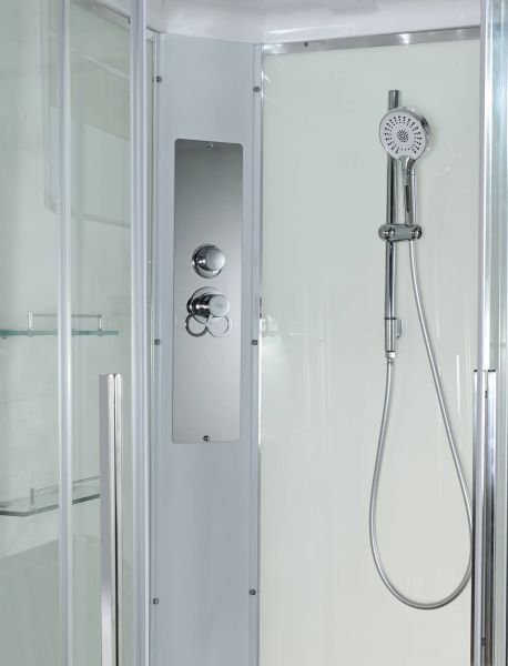 Стильная душевая кабина AvaCan сочетает в себе высокую функциональность, практичность и надежность. При изготовлении применяется безопасное закаленное стекло, надежно фиксируемое алюминиевым профилем. Профиль сделан из алюминия повышенной прочности. Сборка без силикона (увеличивает срок службы, защищает от протечек), внутренняя сборка (облегчает установку и ревизию; позволяет установить в ограниченном пространстве и обойтись без демонтажа других сантехнических приборов), смеситель резьбовой (без хомутов). Съемный экран поддона (позволяет осуществлять подключение и ревизию сифона).Двойные металлические ролики дверей (распределение нагрузки на два ролика, увеличивают срок службы). Душевая штанга(позволяет регулировать по высоте ручную лейку), ручная арома-лейка с витамином С (картридж в комплекте,есть возможность замены или удаления картриджа), полочки(из стекла, с ограничителем), сифон с гидрозатвором.