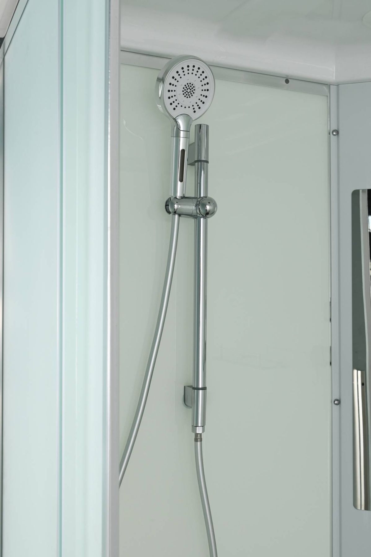 Стильная душевая кабина AvaCan сочетает в себе высокую функциональность, практичность и надежность. При изготовлении применяется безопасное закаленное стекло, надежно фиксируемое алюминиевым профилем. Профиль сделан из алюминия повышенной прочности. Сборка без силикона (увеличивает срок службы, защищает от протечек), внутренняя сборка (облегчает установку и ревизию; позволяет установить в ограниченном пространстве и обойтись без демонтажа других сантехнических приборов), смеситель резьбовой (без хомутов). Съемный экран поддона (позволяет осуществлять подключение и ревизию сифона).Двойные металлические ролики дверей (распределение нагрузки на два ролика, увеличивают срок службы). Душевая штанга(позволяет регулировать по высоте ручную лейку), ручная арома-лейка с витамином С (картридж в комплекте,есть возможность замены или удаления картриджа), полочки(из стекла, с ограничителем), сифон с гидрозатвором.
