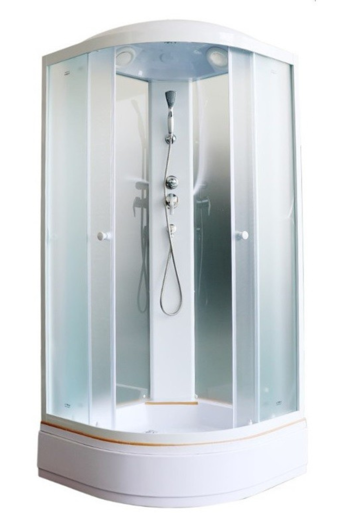 Кабина EFM921 душевая PARLY.Размер: 90х90х215 см.Полукруглая душевая кабина актуальна для любого оформления ванной комнаты и впишется в любой интерьер. Презентабельный вид придают закаленные стекла, которые способствуют надежности и не боятся химических средств. Это позволяет дольше сохранить внешнюю привлекательность кабины. Наличие в крыше вентиляционных отверстий, закрытых дефлекторами, позволит, при необходимости, снизить влажность, путем подключения к вентиляционной системе. Достоинства: