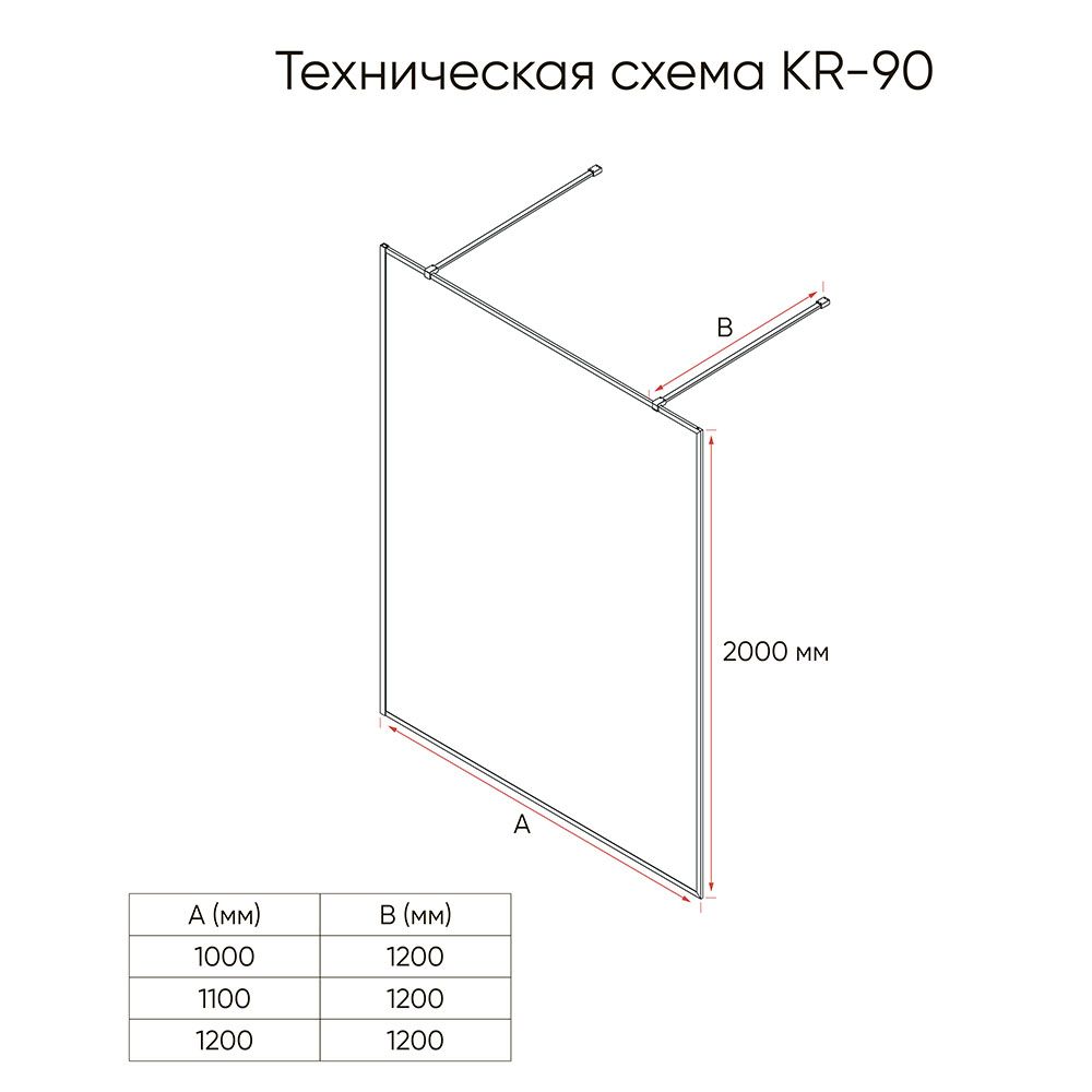 Душевая перегородка Veconi Korato KR-90BB, 1000x2000, черный матовый, черное