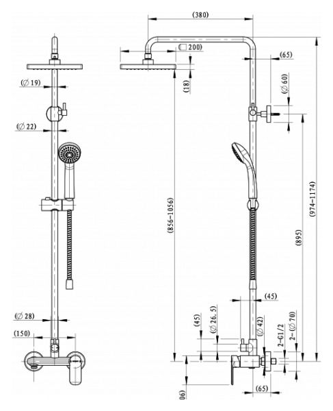 Штанга изготовлена из нержавеющей стали. Хромированная зеркальная поверхность известна высокой стойкостью к появлению пятен и легко моется. В производстве лейки ручного душа и креплений душевой стойки применен ударопрочный, эластичный и нетоксичный ABS-пластик. Тройной слой гальваники обеспечивает надежное функционирование и внешний вид в течение всего периода эксплуатации. Изолированные водотоки в ручке душевой насадки защищают покрытие от разрушения и не допускают нагревания поверхности.