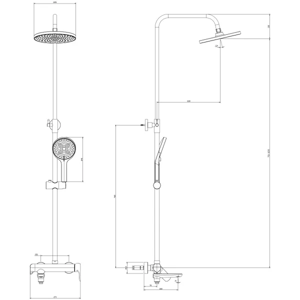 Душевая система DQ Dusseldorf DA1723706 225 мм, со смесителем, графит купить