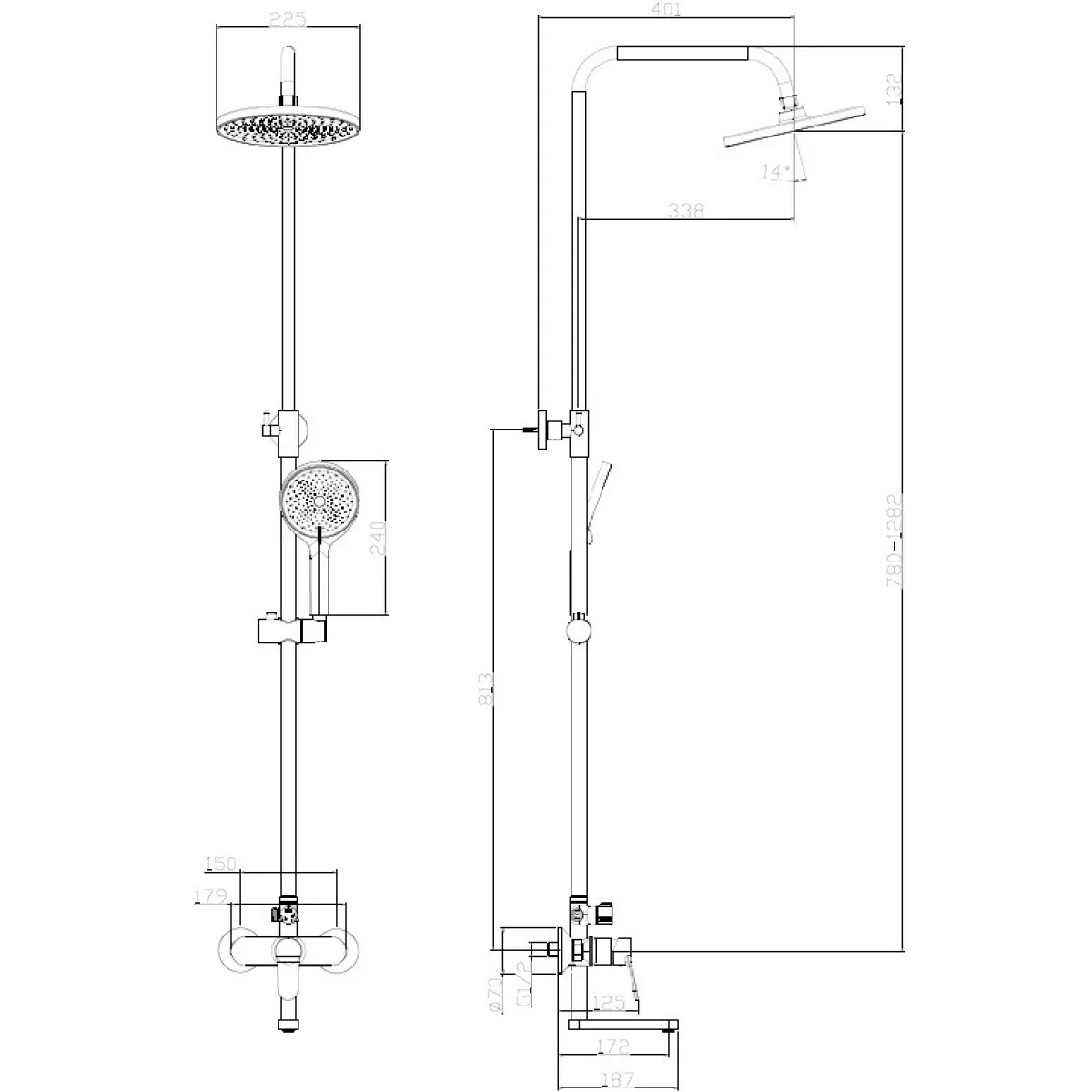 Размер верхнего душа, см:22.5