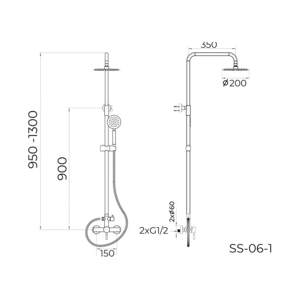 Душевая система Knotlor SS-06/1, сатин