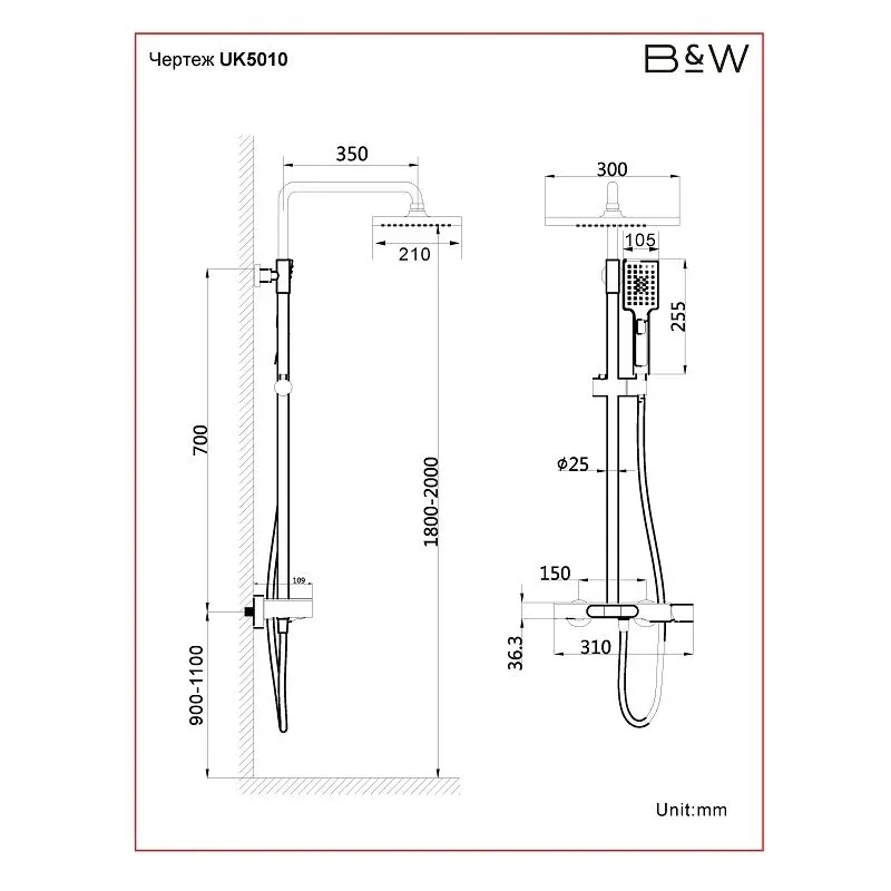 Душевая система Black&White Universe UK5010B, цвет черный матовый, 5010ВUK