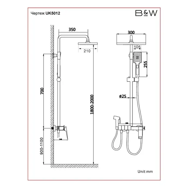 Душевая система Black&White Universe UK5012MG, Gun Metal, 5012MG