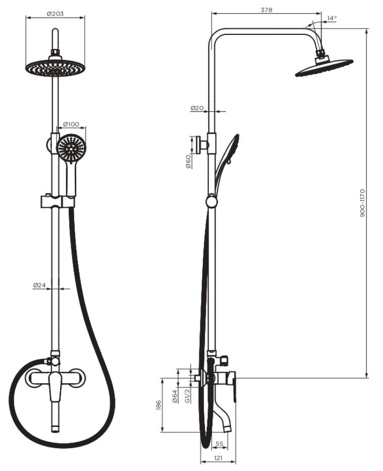 Стильные и большие лейки обеспечат комфортный напор воды, а слайдер ручного душа и крепление верхнего позволит настроить нужное положение.