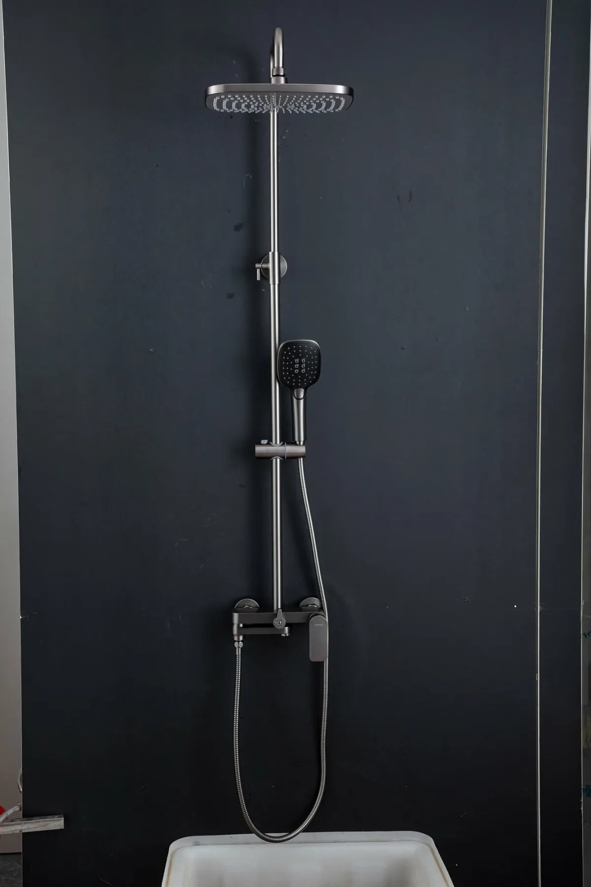Современная душевая система серии G2448-9 GAPPO (гаппо) выполнена из латуни в цвете оружейная сталь, имеет глянцевую поверхность