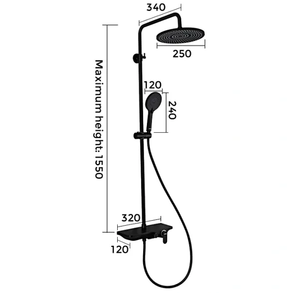 - высота душевой стойки: 1140-1600 мм