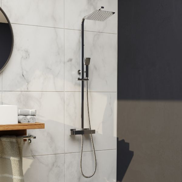 Головной душ Нержавеющая сталь 200х200 мм. Ручной душ ABS, 1 функция. Термосмеситель.Излив поворотный RGW SP-159 приобретается отдельноПредставляем Вашему вниманию душевую стойку из коллекции Shower Panels.Каждая деталь этой душевой стойки составляет общее представление о стиле и лаконичности, а благодаря компактному размещение-разгружает общее пространство.Сегодня такое решение является дополнением к современному дизайну.Помимо визуальной составляющей душевая стойка выполнена по наивысшим стандартам качества.Такое расположение позволяло максимально разгрузить пространство санузлов и выделить для душа совсем небольшой уголок.