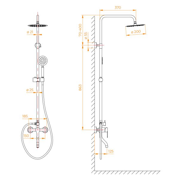 Душевая стойка RGW Shower Panels 59140124-13 - идеальное решение для вашей ванной комнаты. Изготовлена из высококачественных материалов: латунь и нержавеющая сталь, обеспечивая прочность и долговечность. Верхний душ имеет диаметр 20 см и круглую форму, обеспечивая комфортный и равномерный поток воды. Шланг изготовлен из стали и имеет длину 1.5 метра для удобства использования. Смеситель сделан из латуни, оснащен керамическим картриджем, обеспечивая долгий срок службы до 10 лет. Подключение осуществляется через резьбу 1/2 дюйма. Подходит для бытового использования. В комплекте также имеется ручной душ из нержавеющей стали AISI 304 с регулировкой высоты и держатель для него. Стальная штанга с регулировкой высоты верхнего душа и удлиненный излив обеспечивают дополнительный комфорт во время принятия душа.Дополнительные характеристики:
