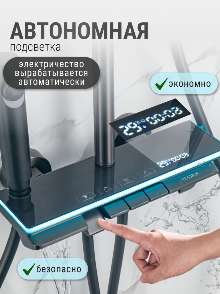Душевая система с краном бренда Vexorus - это идеальный выбор для тех, кто ценит качество, стиль и комфорт. Представленное оборудование является надежным и долговечным, что позволяет использовать его на протяжении многих лет.