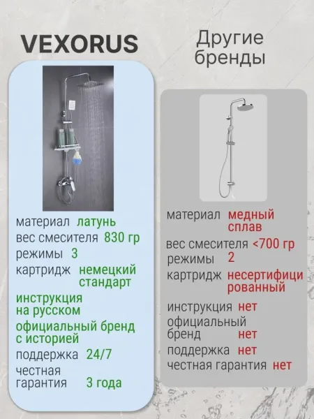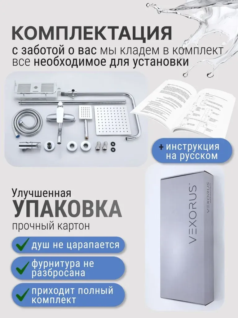 Душевая система с краном бренда Vexorus - это идеальный выбор для тех, кто ценит качество, стиль и комфорт. Представленное оборудование является надежным и долговечным, что позволяет использовать его на протяжении многих лет.
