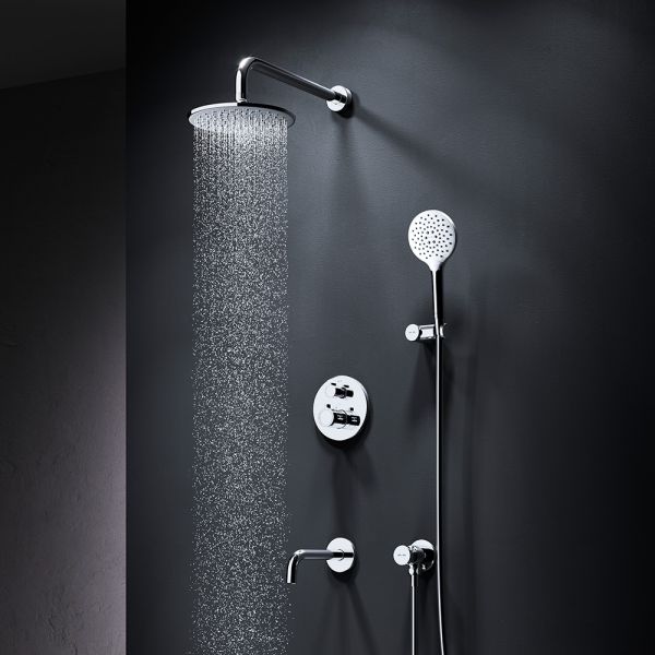 Набор встроенного оборудования X-Joy - идеальное решение для вашей ванной комнаты. Встроенный механизм освобождает ванную комнату от лишних деталей превращая пространство в идеальное место для себя. Набор включает в себя: верхний тропический душ 22 см, ручной душ, держатель ручного душа и смеситель.