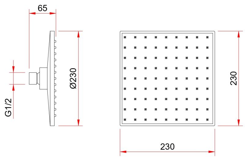 Размер верхнего душа, см:23