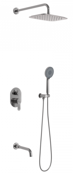 Душевой комплект BERGES VENTAS 3O - встраиваемый душевой комплект обладает трёхрежимной системой и состоит из верхней лейки - «тропического ливня», ручного душа, излива и смесителя.Лейка верхнего душа имеет инновационную систему самоочистки в виде гибких силиконовых вставок на форсунках душа, которые защищают изделие от известковых отложений. Верхний душ изготовлен из нержавеющей стали. Ручной душ – из ABS пластика. Оба душа имеют хромоникелевое покрытие, которое выглядит безупречно на протяжении всего периода эксплуатации.Шланг выполнен из нержавеющей стали (внутри epdm), смеситель с латунным корпусом имеет керамический картридж с пропускной способностью 28 л/мин, все держатели и кронштейны сделаны из латуни и нержавеющей стали.Скрытый монтаж комплекта позволяет создавать красивое и эргономичное внутреннее пространство всего помещения.