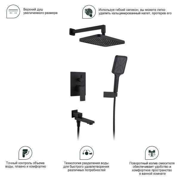 Душевая система встраиваемая Splenka S01.27.06, черный. Материал: латунь. Управление: однорычажное. Механизм: керамический картридж. Излив: поворотный. Аэратор. Стандарт подводки: G 1/2.