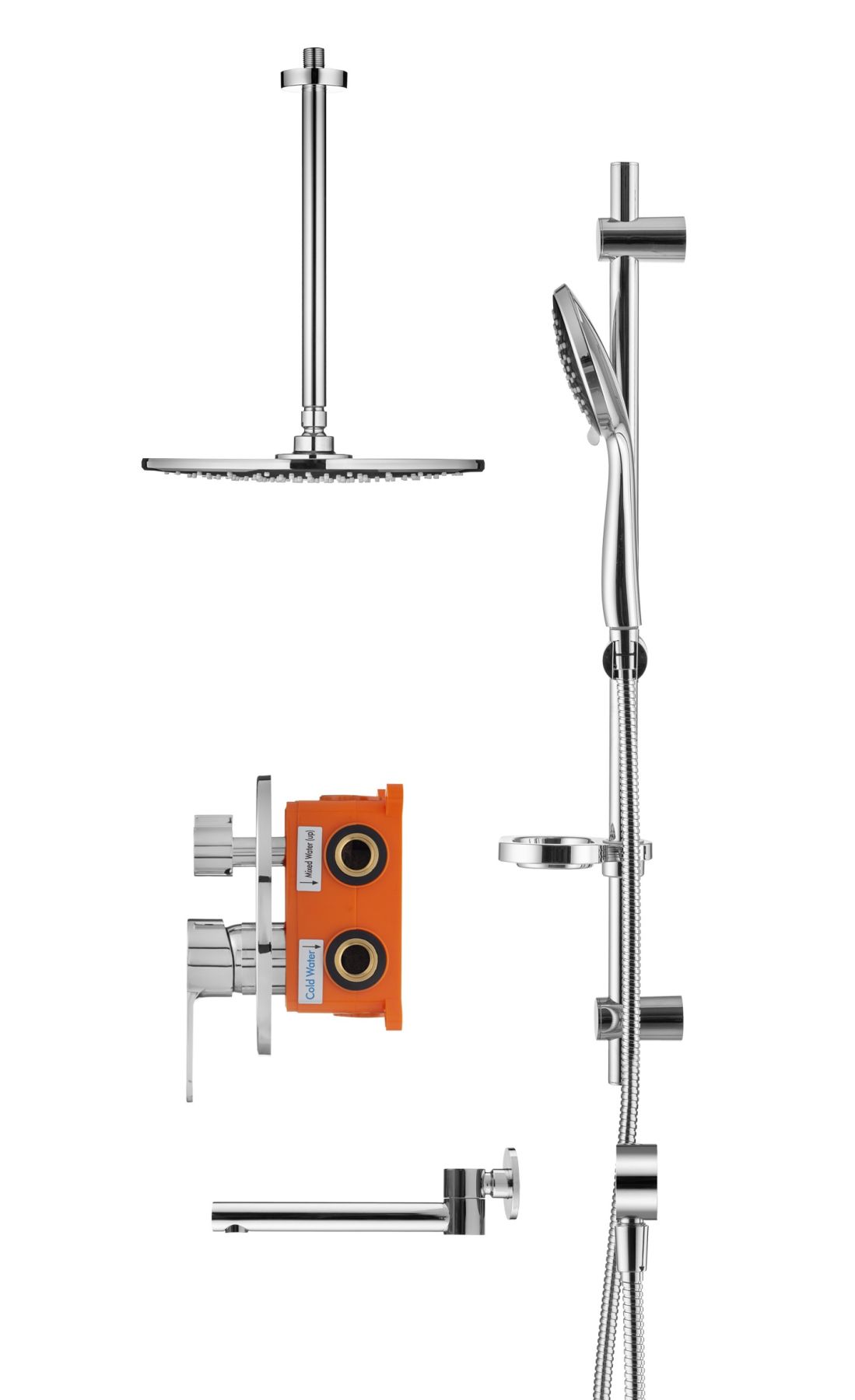 Swedbe Platta 5543G1 Душевой комплект со встраиваемым смесителем (с монтажным боксом), верхним душем и поворотным изливом.