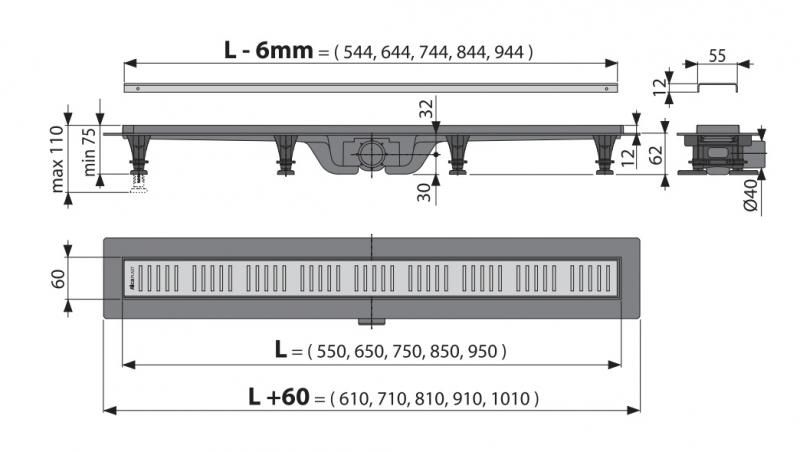 Душевой лоток AlcaPlast Simple с решеткой и опорами APZ10-950M