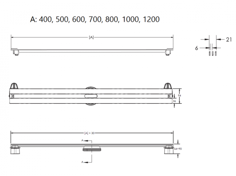 Решетка и декоративные заглушки, нержавеющая сталь AISI 304Комплект регулировки решетки по высоте от 8 до 30ммСетка для волос, пластикКомплект гидроизоляцииЖелоб водосток, нержавеющая сталь AISI 304Монтажная заглушка, пенопластРегулируемые по высоте ножки, пластикСамопромывной S-образный сифон PPВертикальный выпуск 48 л/мин , пропускная способность 42л/мин, монтаж 360°Монтажный ключ, пластик