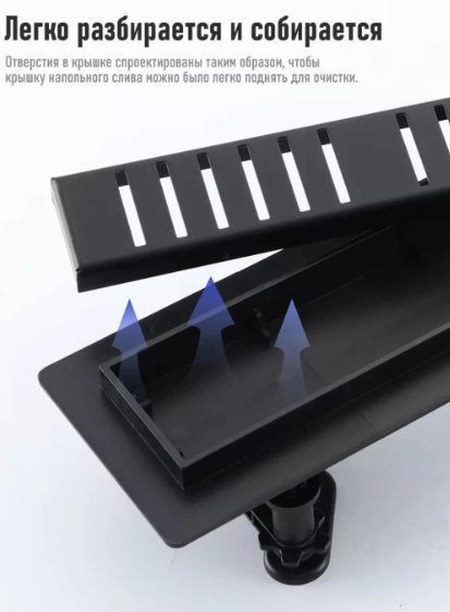 Душевой трап Gappo G88007-56 с решеткой из нержавеющей стали линейного типа. Компактный, но очень эффективный. Гарантирует скорость слива 30 литров в минуту. Гидрозатвор комбинированный, то есть сухой и мокрый. Не пропускает запахи канализации в помещение. Его легко чистить, так как он просто разбирается.