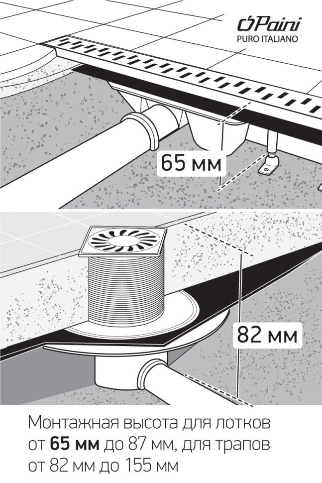 Безбарьерная среда в душевой – новый тренд, и душевой лоток с решеткой MEDIUM от PAINI восхищает стилем и комфортностью использования и установки. Рамка вокруг решетки усиливает конструкцию, что делает ее прочнее. Горизонтальный выпуск облегчает монтаж, трубы можно устанавливать по полу, что сэкономит бюджет. Благодаря конструктивным особенностям душевые лотки не требуют высокой заливки пола, что максимально упрощает установку. Покрытие, защищающее от механических и химических повреждений, продлевает срок службы.Европейское качествоКачество, подтвержденное гарантией производителя 25 лет. Срок службы не менее 30 лет.Экономия за счет конструктивных особенностейМинимальная высота монтажа – 65 мм, не требует масштабной заливки пола и сложной установки. Ножки регулируются от 65 до 87 мм.Высокая пропускная способностьПропускная способность от 30 до 37 л/мин в лотках "ПАИНИ" не позволит воде задерживаться в душевой.Надежная защита от неприятных запаховКомбинированный затвор (сухой + гидрозатвор) не пропускает запахи в помещение, надежно защищая вас от неприятных сюрпризов. Такая конструкция сифона в душевом лотке считается самой универсальной и надежной защитой от запахов и бактерий. Затворы такой конструкции отличает двухуровневая защита: водяная пробка не пропускает запахи при постоянной эксплуатации, а воздушная поплавковая система является дополнительной преградой при пересыхании водяной пробки.Разнообразие размеровРазмерный ряд лотков от 450 до 850 мм. Можно найти лоток, подходящий именно в ваш интерьер.Покрытие, устойчивое к повреждениямУстойчивое к ржавчине и известковому налету. Безопасность от накопления бактерий и особый глянец 24х7 для хромового покрытия.КомплектацияПереходник для выпуска D50 мм позволяет не задумываться о монтаже – подойдет на любую трубу. Гидроизоляционная лента в комплекте.