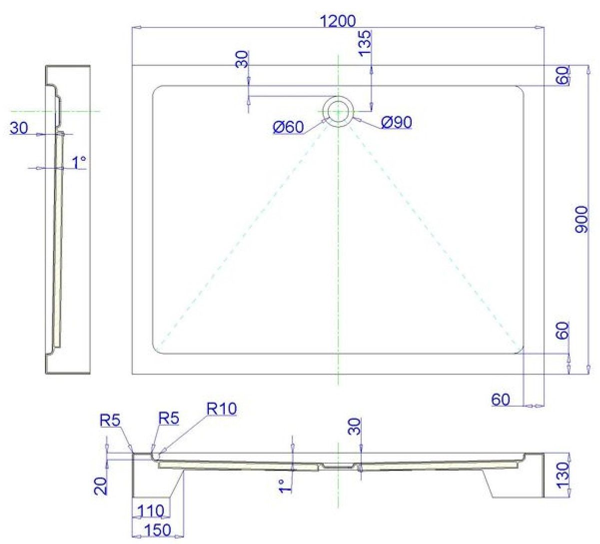 - Душевой поддон на ножках
