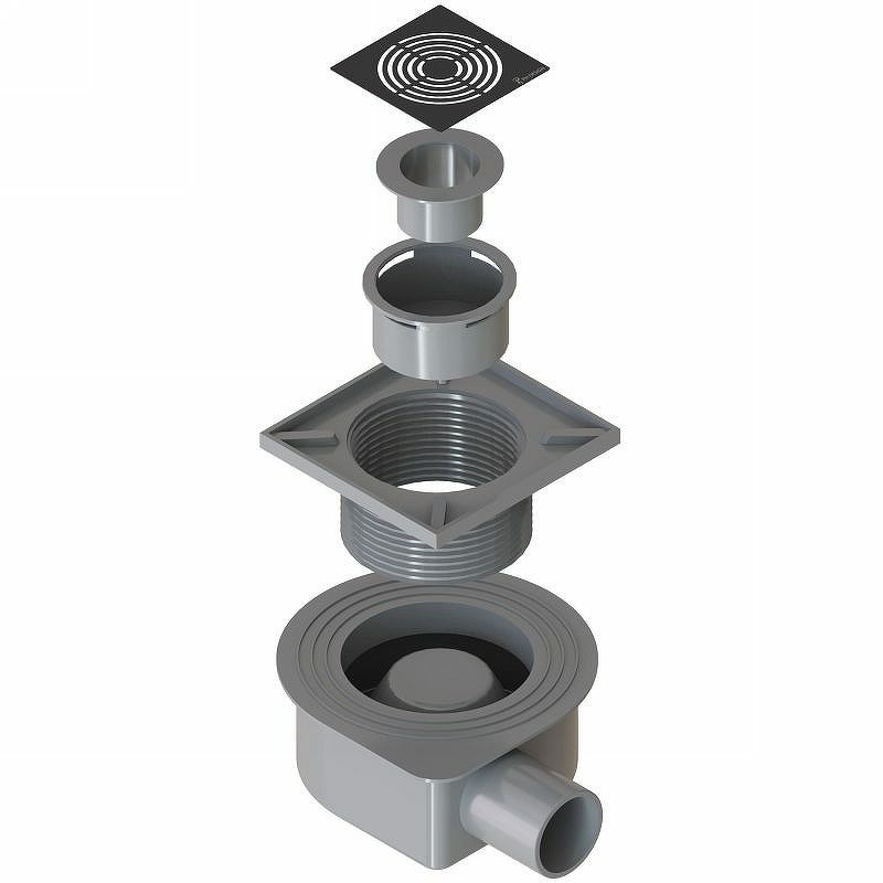 Оснащение: решетка / улавливатель волос / изолирующий фланец.