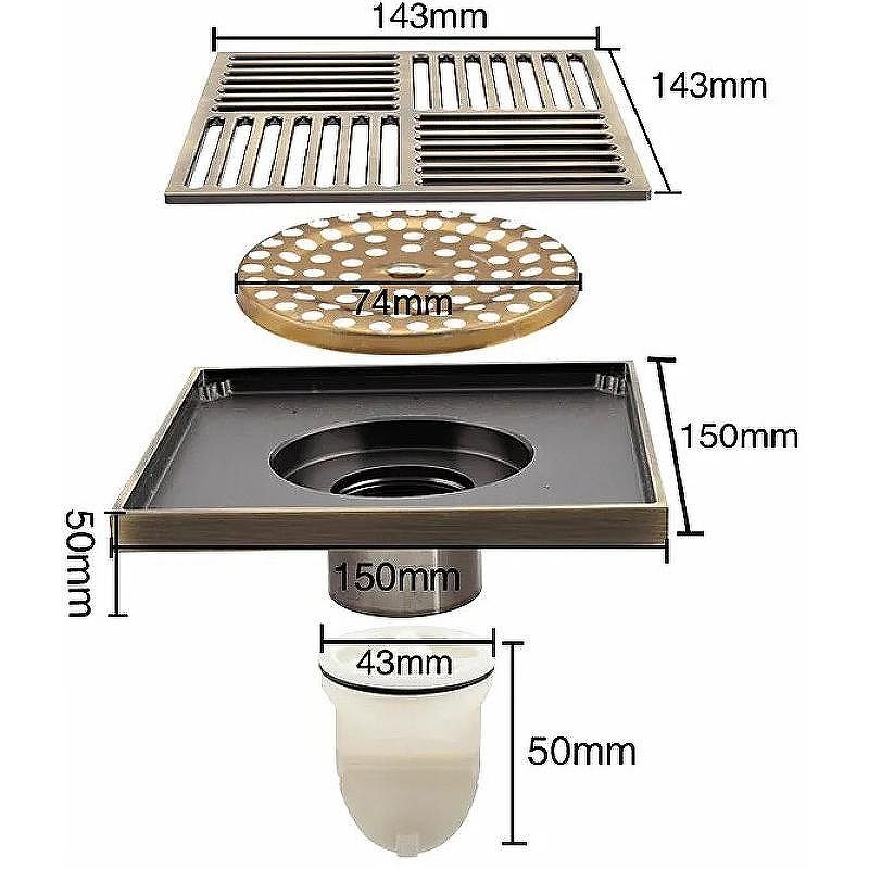 Трап для душа с вертикальный выпуском Gappo G81501-4, размер 15 * 15 см, цвет бронза, изготовлен трап из нержавеющей стали.