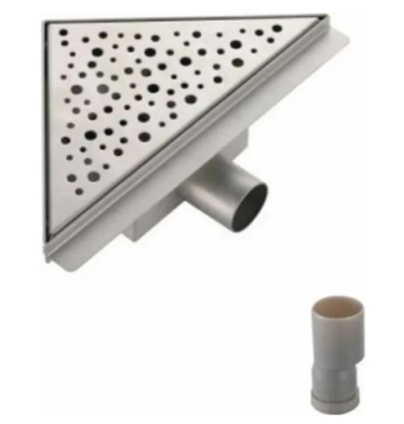Угловой трап для душа с боковым выпуском Gappo G82020-1, размер 20 * 20 см, цвет сатин, изготовлен трап из нержавеющей стали. Боковой выпуск 40 мм, в комплекте переходник на 50 мм. Защита от запаха: комбинированный гидрозатвор, защита от проникновения запаха и жидкости из канализации.