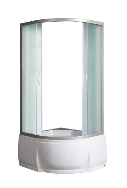 Типы и размеры:без поддона 90*90*150с поддоном 90*90*196Матовое стекло, профиль матовый хромДушевое ограждение для ванной комнаты полукруглое с боковым регулировочным профилем и саморегулирующимися металическами, хромированными, двойными роликами.