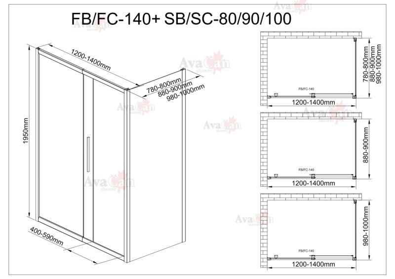 Душевой уголок AvaCan FB 120-140 + SB 90 MT чёрный