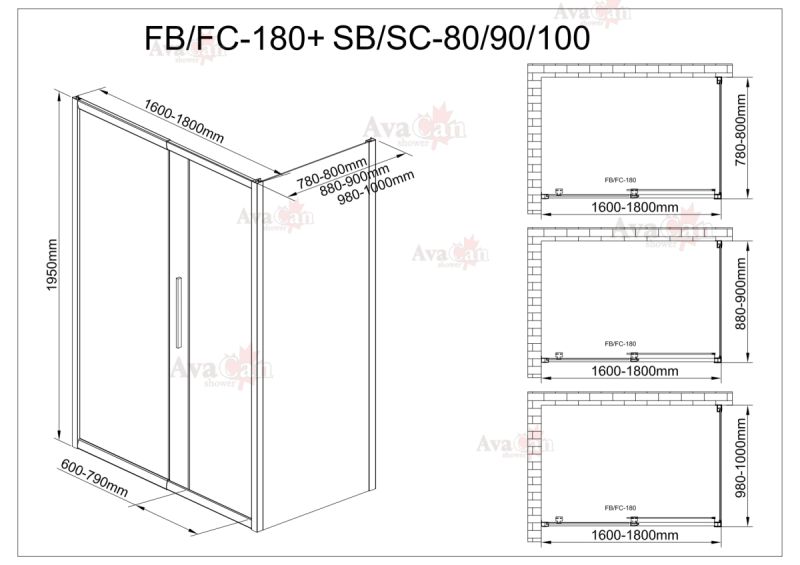 Душевой уголок AvaCan FB 160-180+ SB 90 MT чёрный