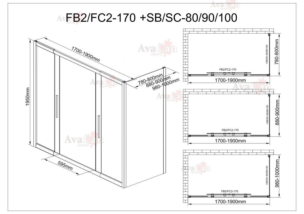 Душевой уголок AvaCan FC2 170-190 + SC90 хром