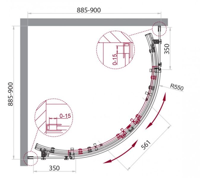 Душевой уголок BelBagno четверть круга хром ACQUA-R-2-90-C-Cr