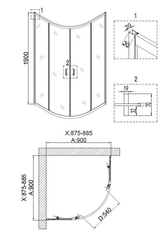 Форма:четверть круга