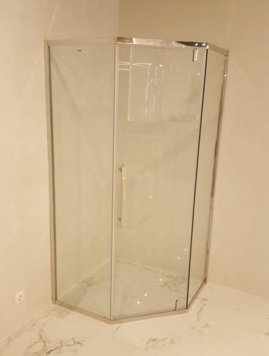 Душевое ограждение с БЕЗ ПОДДОНА глянцевый серебристый алюминиевый профиль, алюминиевая рама, стекло толщиной 8 мм, металлические ручки, сдвижные дверцы, бесшумные усиленные ролики